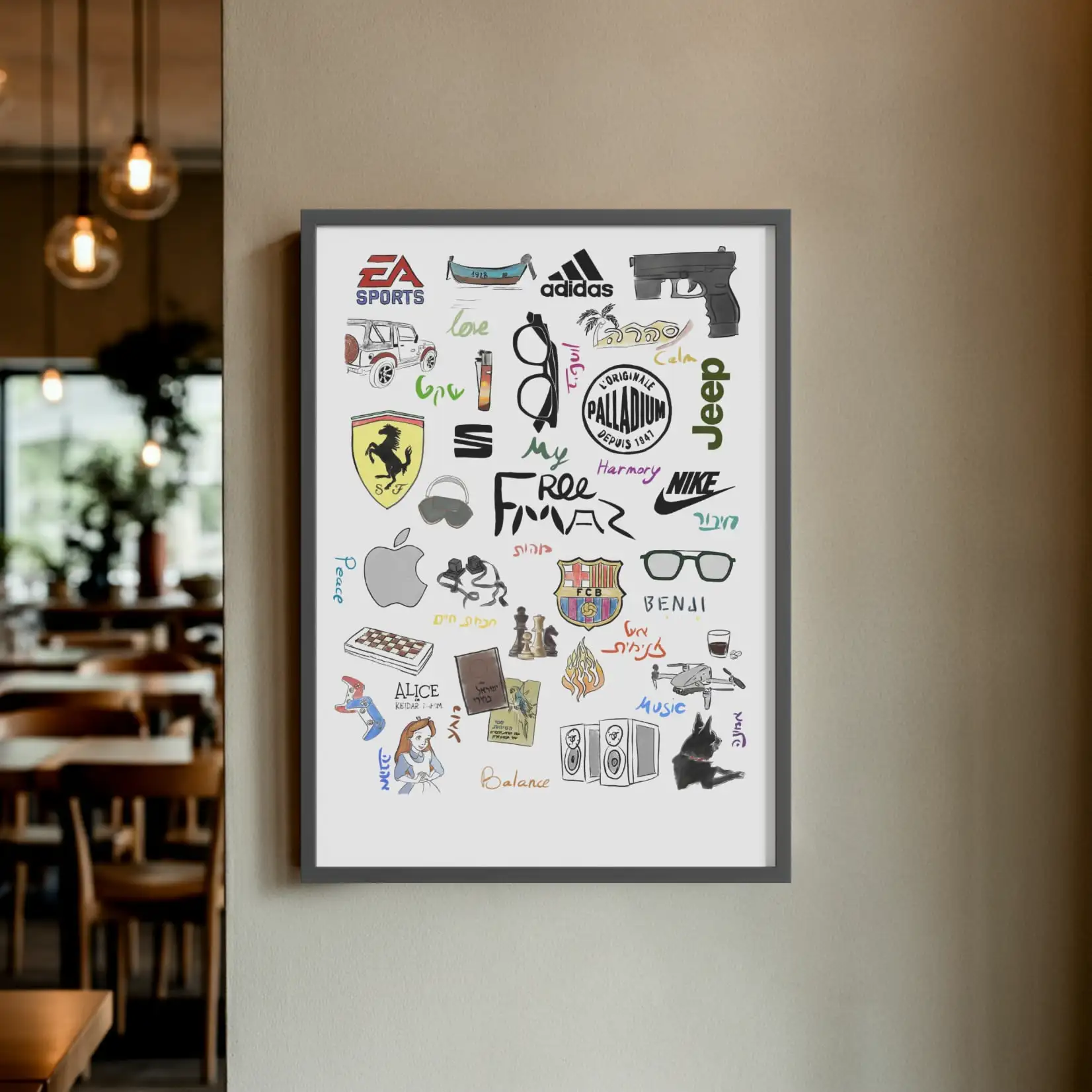 מתנה ייחודית לימי הולדת, ימי נישואין או פשוט להביע אהבה, ציור ייחודי בעבודת יד, המשלב את כל האלמנטים של מקבל המתנה, ניתן להדפסה על 20+ מוצרים